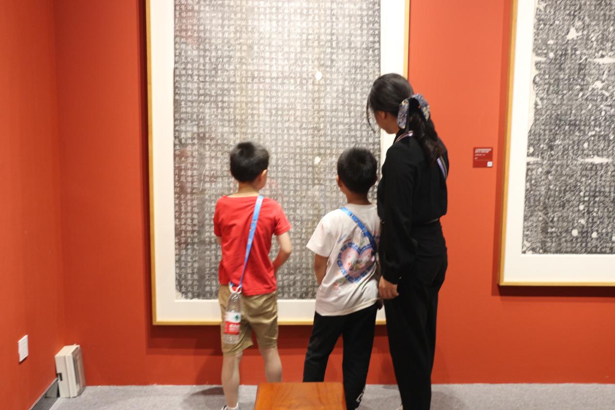 校史馆参观结束后,校友们一同移步至“喻见典藏”人文学院藏历代金石拓片展。大家沿着文字演变的历史脉络,沉浸式游览展厅。殷墟龟甲的神秘纹路、先秦吉金的古朴庄重、汉魏碑刻的雄浑大气、唐宋拓片的风雅韵致、明清丛帖的精妙绝伦,不同时期的珍贵拓片依次呈现。展厅中,诸多代表性珍品熠熠生辉,每一件都兼具艺术与学术价值,例如明代《满江红》石刻将炽热的爱国情怀镌刻得淋漓尽致,使得大家纷纷赞叹中华优秀传统文化的博大精深。