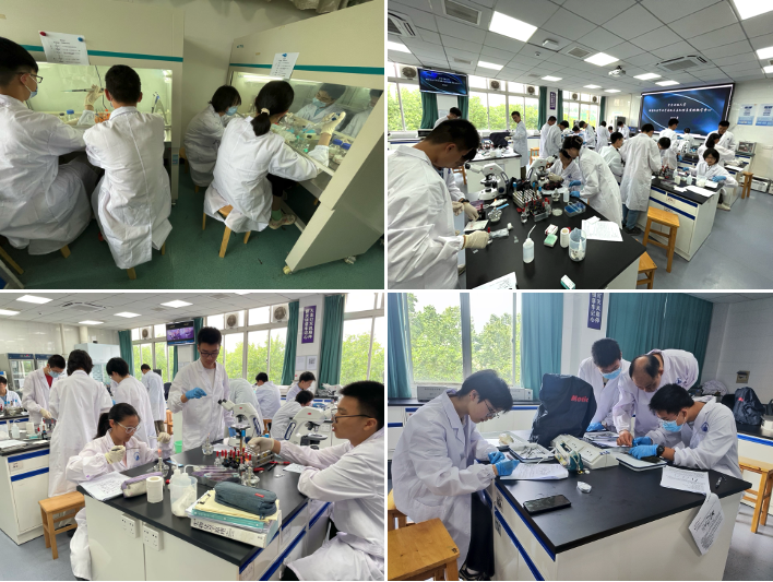 这次培训涉及分子生物学、细胞生物学、微生物学、生物化学、DNA指纹技术、动物学和植物学等七个学科为期5天的实验项目,先后有李奇志、唐朝晖、陈明洁、白虹、白云、曾小美、任翔、艾阳、廖贵芹、周爱文、袁雅燕、阮晶、张耀文、邹昂、郭跃等多位经验丰富的教师对学生们进行悉心指导。在实验培训中,同学们逐渐学会了较熟练地使用显微镜、移液枪、分光光度计、离心机等常见生物学实验仪器,完成徒手切片、测定蛋白质浓度、HeLa细胞的传代培养并进行核酸标记等实验任务,更加深刻的认识理解了实验操作规范、实验设计思维,本次实验培训取得较好的效果。