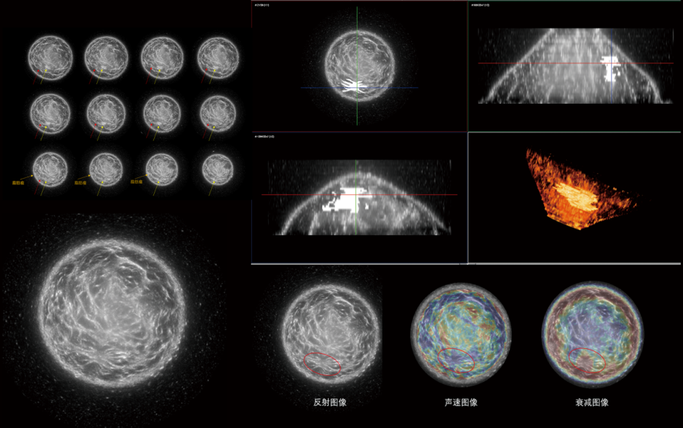 超声断层成像是近年来医学超声影像领域一项革命性的技术。传统超声成像依靠医生手持探头扫描人体,局部成像。超声断层成像系统采用类似MRI和CT的标准化和自动扫描模式,采集人体360°全散射信息,重建高分辨率的结构图像和高灵敏度的声速和衰减功能图像,实现了从“管中窥豹”到“一目了然”的跨越。