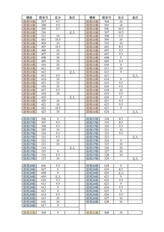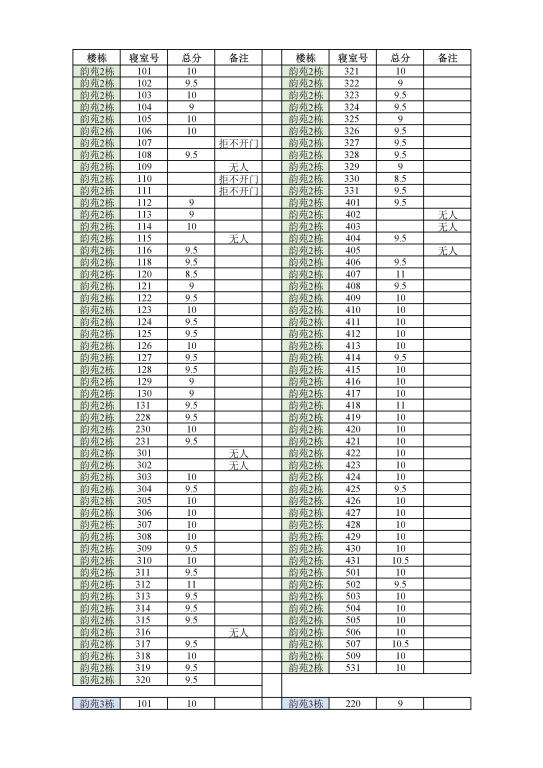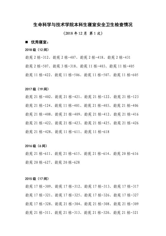 12月16日,学院学生会生活权益部组织开展了对全院500余间本科生寝室的安全卫生检查工作(每两周开展一次),检查结果如下,感谢全院同学对寝室检查工作的配合与支持,让我们共同营造更为安全、温馨的寝室氛围。