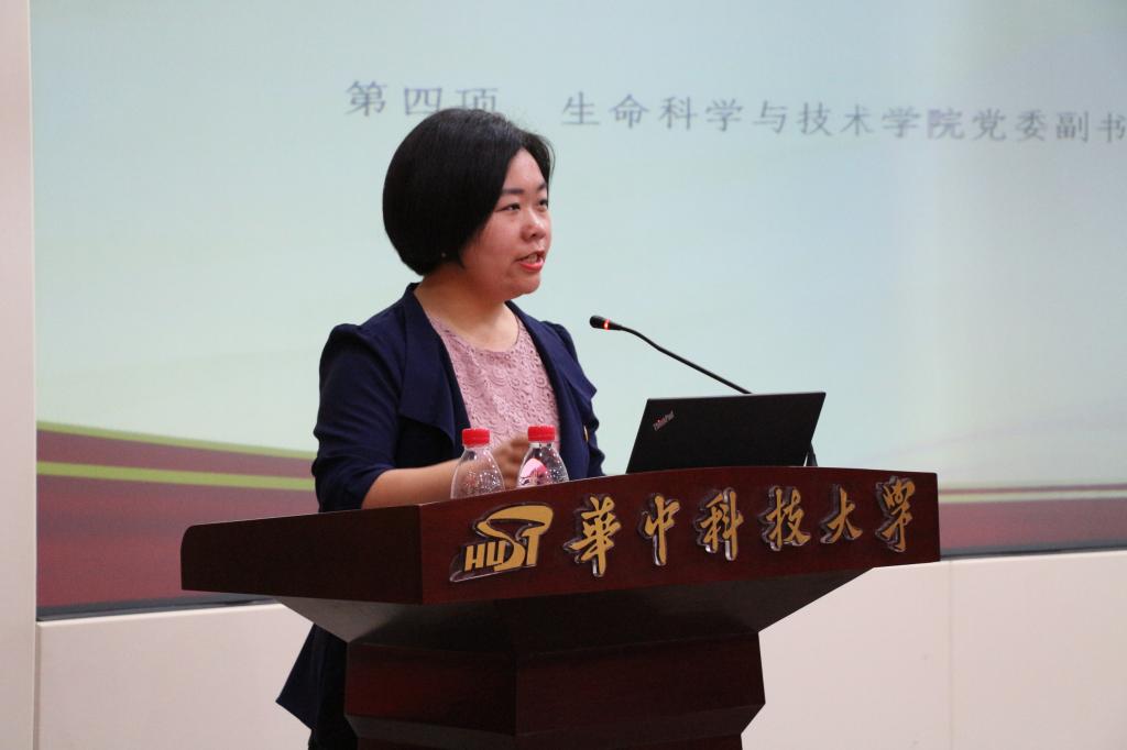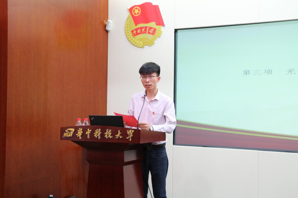 在奏唱国歌之后,大会正式开始。孔姝副书记为大会致辞,她肯定了过去一年里分团委工作所取得的成绩,并对接下来的工作寄予厚望,希望同学们携手并进,奋勇争先,为学校、学院“双一流”建设贡献青春力量。随后光学与电子信息学院分团委书记姜波老师代表兄弟院系致贺信,对我院第一次团代会的顺利召开表达祝贺和关切。