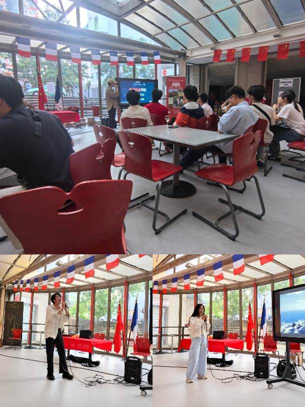 今天的最后项目是中法同学卡拉OK欢唱环节,大家都拿出看家本领,一展歌喉,在愉快的歌声和氛围中,今天的活动走向尾声。