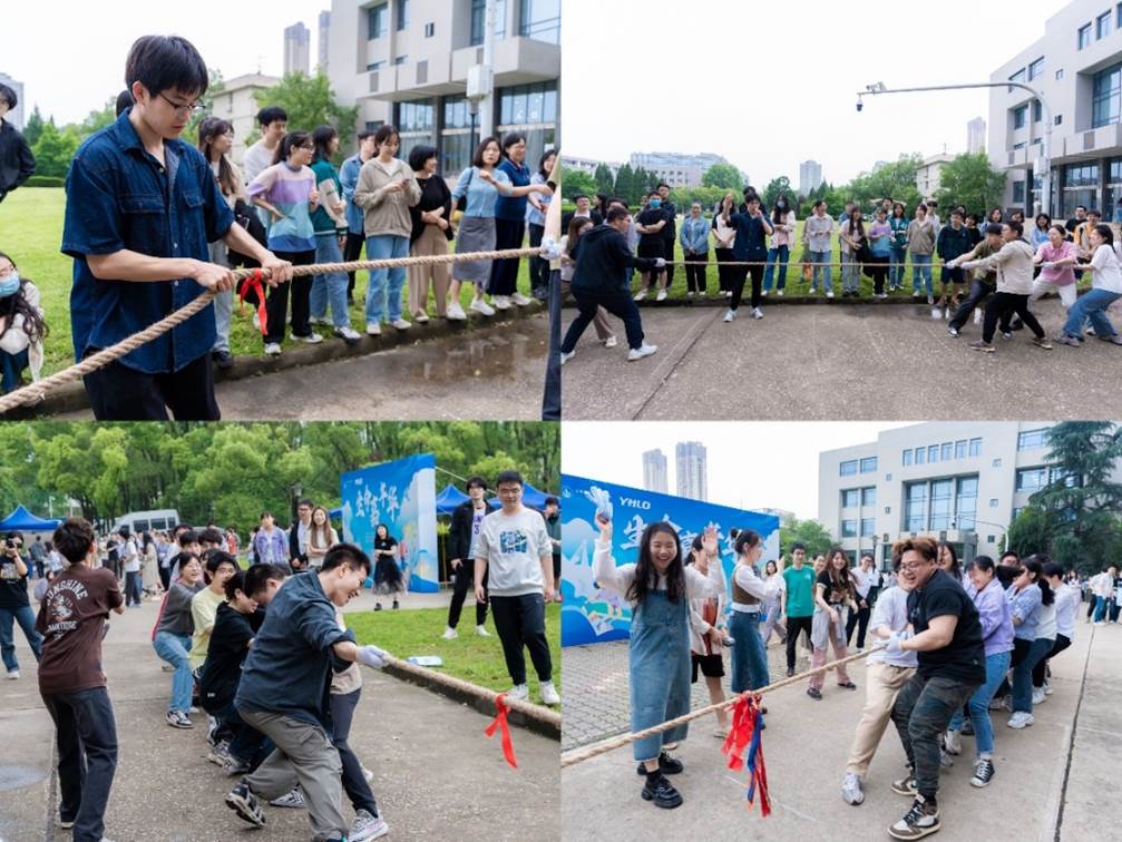 团队赛包括拔河比赛和“抛球进桶”。随着裁判的一声哨响,拔河队员们瞬间爆发出惊人的力量,口号声整齐划一,呐喊声此起彼伏,在这场力量与意志的较量比赛中,师生们充分展示了团结合作的精神。“抛球进桶”非常考验队员之间的默契程度,根据队友的站位和动作迅速调整姿势,把团队合作的重要性凸显的淋漓尽致。结合两轮成绩,团队赛的前三名的队伍分别为“数据别和我作队”“纳米巨人队”和“生物技术精英队”。