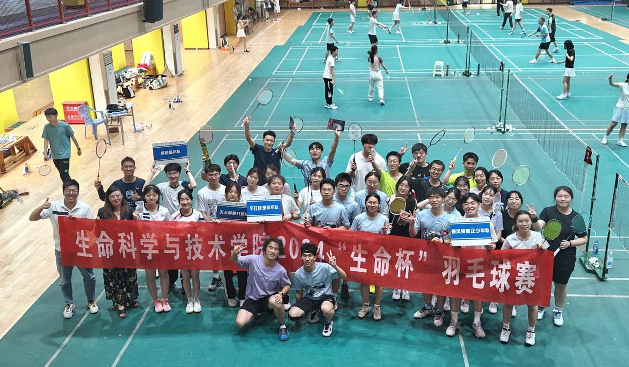 本次比赛按照专业院系分为了八支各具特点的队伍,各参赛队伍在队长的带领下,细心安排参赛阵容,进行战术商讨,并以最饱满的心态投入竞赛中。经历一整天的激烈竞技,最终决出了本次“生命杯”羽毛球赛的冠军队伍——“天天也要打球队”。在参赛队员的欢呼声中,本次“生命杯”师生羽毛球赛圆满结束。