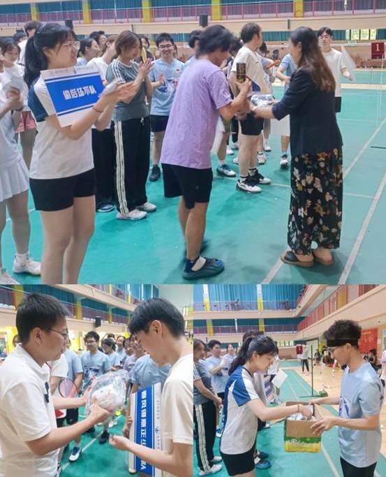 安娜老师与彭一鸣老师分别为冠亚军颁发了羽毛球及球袜、腕带等奖品,鼓舞了大家更加热心投身于羽毛球运动的氛围。学院羽毛球社团负责人李晨同学为季军颁发了羽毛球饰品奖品,鼓励大家多多参与运动,时刻牢记体育精神。