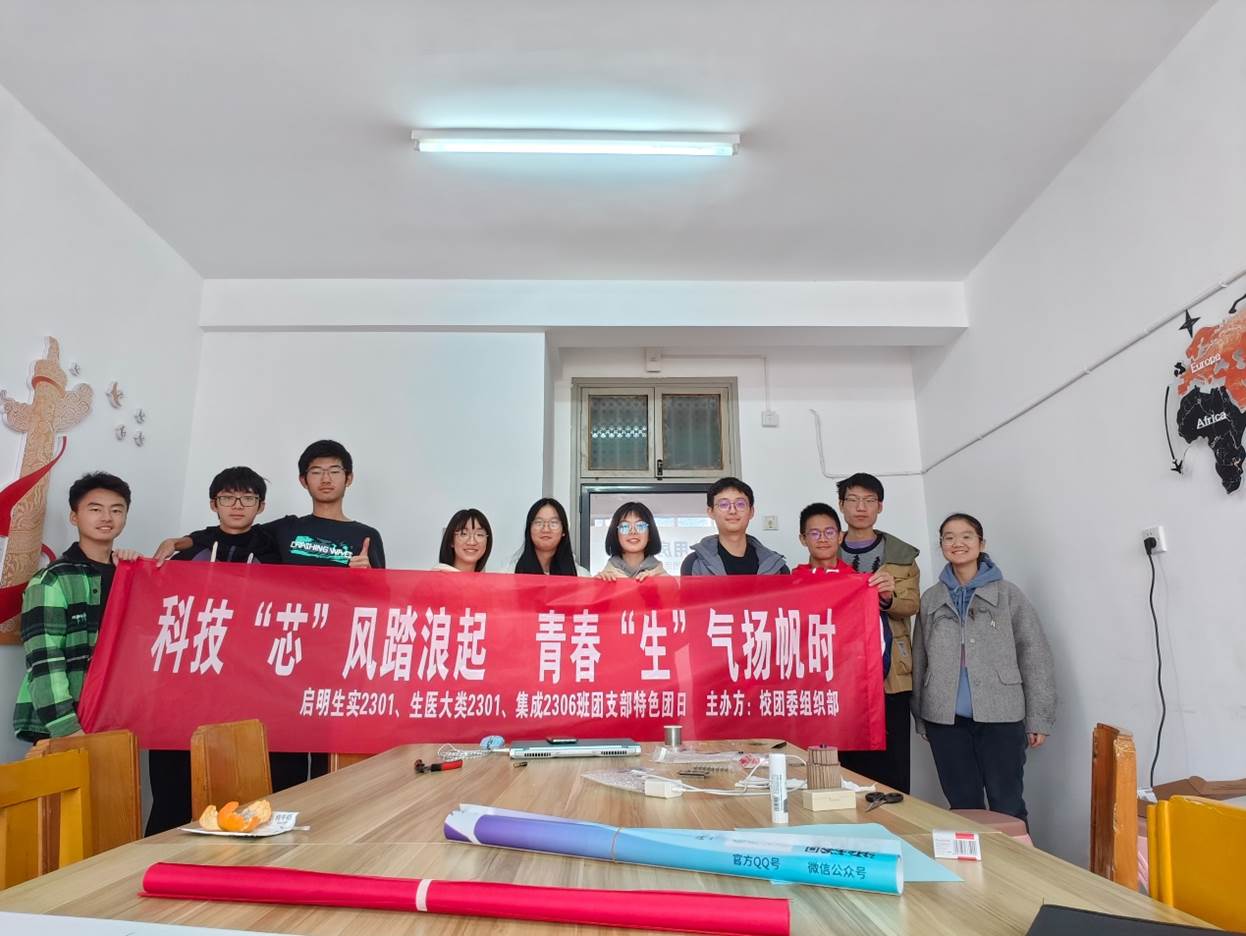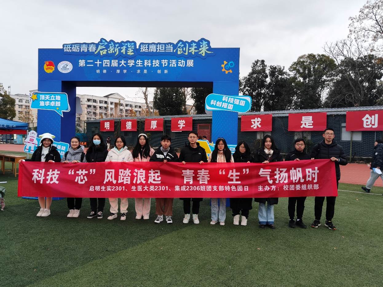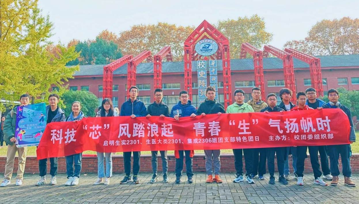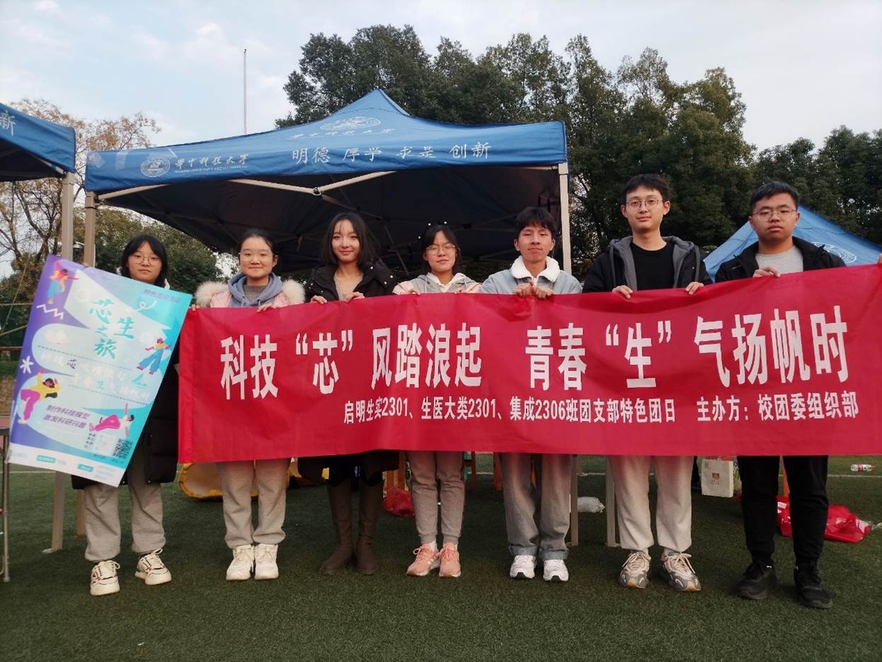 “芯生”团支部由分别来自生命学院的启明生实2301班、生医大类2301班和集成电路学院的集成2306班,支部所属专业均与国家前沿科技的发展息息相关,为了追求科技理想,坚定报国信念,核心班委成员共同协商策划开展了科技DIY、专家采访、企业走访、特团路演、科技节展览、冬日暖阳回访母校、科普进社区等活动。