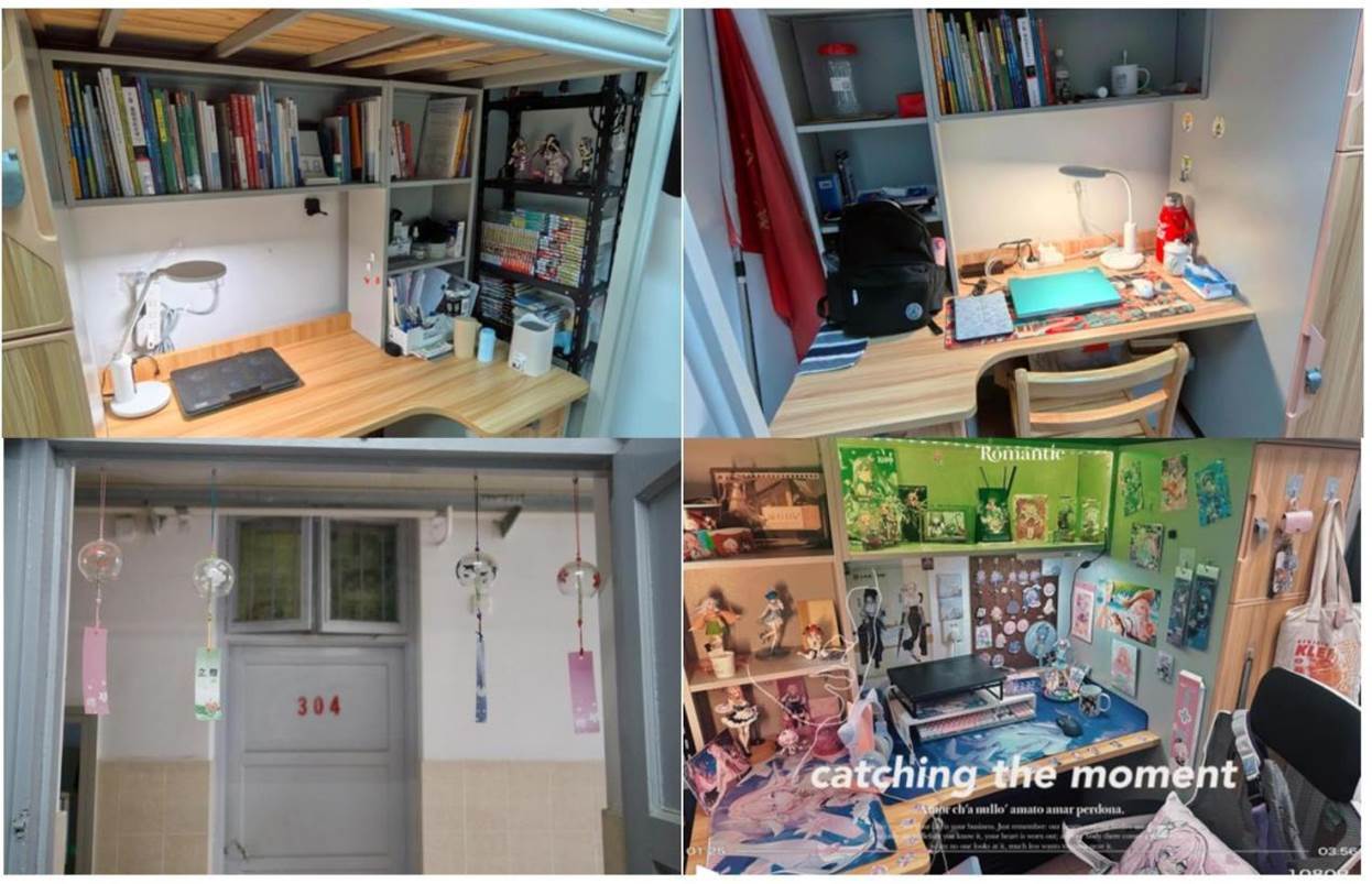 韵苑21栋322寝室成员为登峰2301班学生,整洁而又不失风趣,4位登峰班同学在这里相遇,其中廖子杰作为篮球运动小健将参加学院新生杯比赛并取得团队亚军、周建宇为我校新媒体公众号“华小科”成员、刘一文热衷参与定向越野赛。在生活中他们担任着不同角色,在寝室,他们便是一个整体。韵苑21栋303寝室成员均为中外2301班学生。寝室长樊子乐身为班长参加着诸多学生组织为同学奉献。门口的风铃装饰、别样的书桌摆件彰显着他们对生活的热爱。