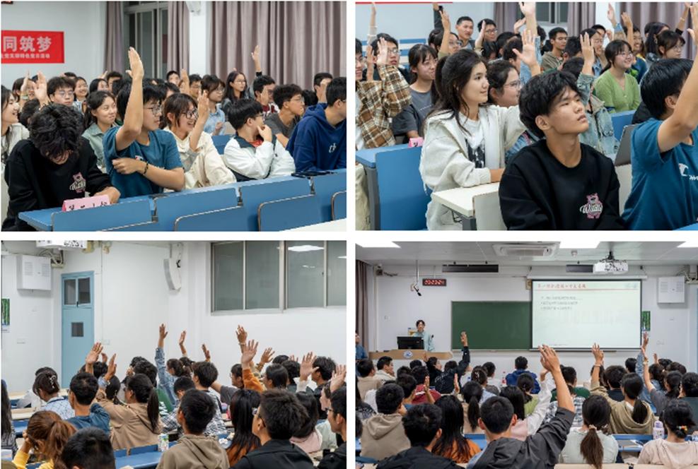 在第三部分的知识竞赛活动开始前,大家一起观看了一段由支部杨鸿晖同志剪辑的视频。视频展现了24级新生们入学首月的感想与收获,记录了他们逐渐适应大学生活的过程,满含青春的活力和对未来的期待。