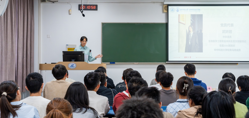 活动的第二部分,由生物医学工程专业本科生党支部党员代表,2021级武妍君学姐,分享她在本专业的收获。初入大学面对未知与迷茫时,她积极寻求老师和朋友的帮助,从多条道路中逐渐明确自己的方向。在参与支教活动的过程中,她不仅收获了幸福感,还发现了自身优势。随后加入校青马班,参与志愿活动、政务见习,并在大四成功保研。学姐激励同学们,面对选择不要犹豫,勇于尝试,去寻找和明确奋斗目标。