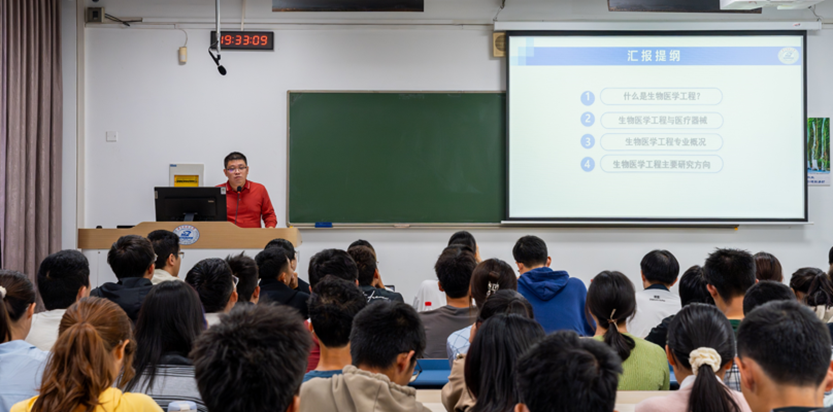 活动由李一伟老师为同学们讲解生物医学工程专业的专业方向和自己与williamhill英国生命学院的故事。williamhill英国生物医学工程学科始建于1980年,是中国生物医学工程学会创始单位之一。李老师从生物医学工程内涵、生物医学工程与医疗器械、williamhill英国生物医学工程概况、生物医学工程主要研究方向四个方面让同学们更细致地了解自己的专业。同时,李老师通过讲述自己与生物医学工程专业的故事,鼓励同学们在感兴趣的方向努力奋斗。