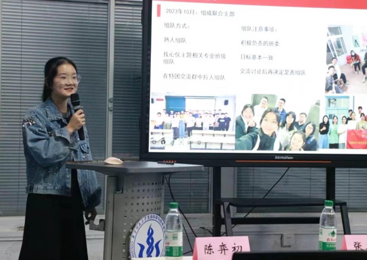 接着,团委组织部负责人陈弈初对主题团日和特色团日两大板块分别进行了详细讲解。陈弈初系统地介绍了团日活动策划实施和团课内容设计执行,作为优秀团支书代表,结合自己的工作经验,分享了如何使团日活动紧扣主题并富有新意的巧思,并着重说明了工作开展的灵活性。她的分享为新任团支书们提供了宝贵的经验,激发了大家的工作热情。