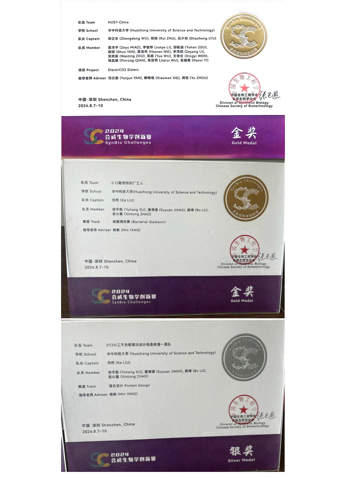 合成生物学创新赛由深圳理工大学合成生物学院、中国科学院深圳先进技术研究院合成生物学研究所、深圳合成生物学创新研院等30家单位联合发起并支持,旨在为青年学生提供一个交流学习、创新、创智、创造的平台,为合成生物学、生命科学、交叉学科培养后备生力军。比赛设置常规赛、细菌博弈赛、蛋白设计赛三项,从创新性、科学性、逻辑性等多方面综合评价,并设置金银铜及多种单项奖。在本次创新赛中,我院三支本科生科创队伍经过激烈角逐,分别获常规赛金奖、细菌博弈赛金奖及合蛋白设计赛银奖。