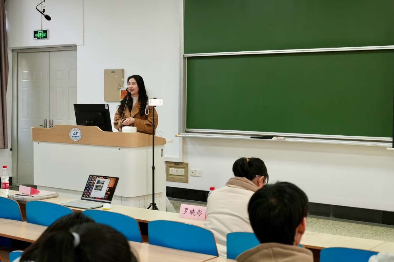 马业菲、聂丽娟分别就本学期教务工作安排和注意事项进行详细解读。马业菲重点梳理了选课安排、学分清理、培养计划及实验班管理规定,提醒同学们关注教务系统通知,避免因操作失误影响学业进度。聂丽娟则针对课程安排、学习纪律等进行说明,强调学术诚信的重要性。