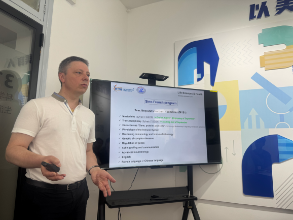 4月22日中午,2025年巴黎萨克雷大学生物与健康硕士项目宣讲会在生命学院“一站式”学生社区顺利举办,法方教授Sylvain FISSON、生命学院国际交流辅导员周钰及各年级感兴趣的同学参加会议,会议由周钰支持。