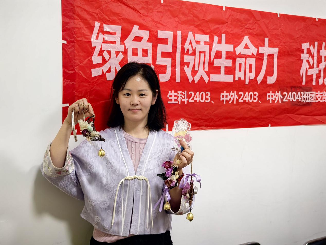 活动筹备阶段,团支部成员践行环保理念,在校园内开展“自然寻宝”行动,细心收集自然飘落的花叶与绿化修剪时遗弃的残枝,将这些“被遗落的春日信物”分类整理,最终将百余件自然素材转化为手工创作材料包,让生态环保理念贯穿活动始终。