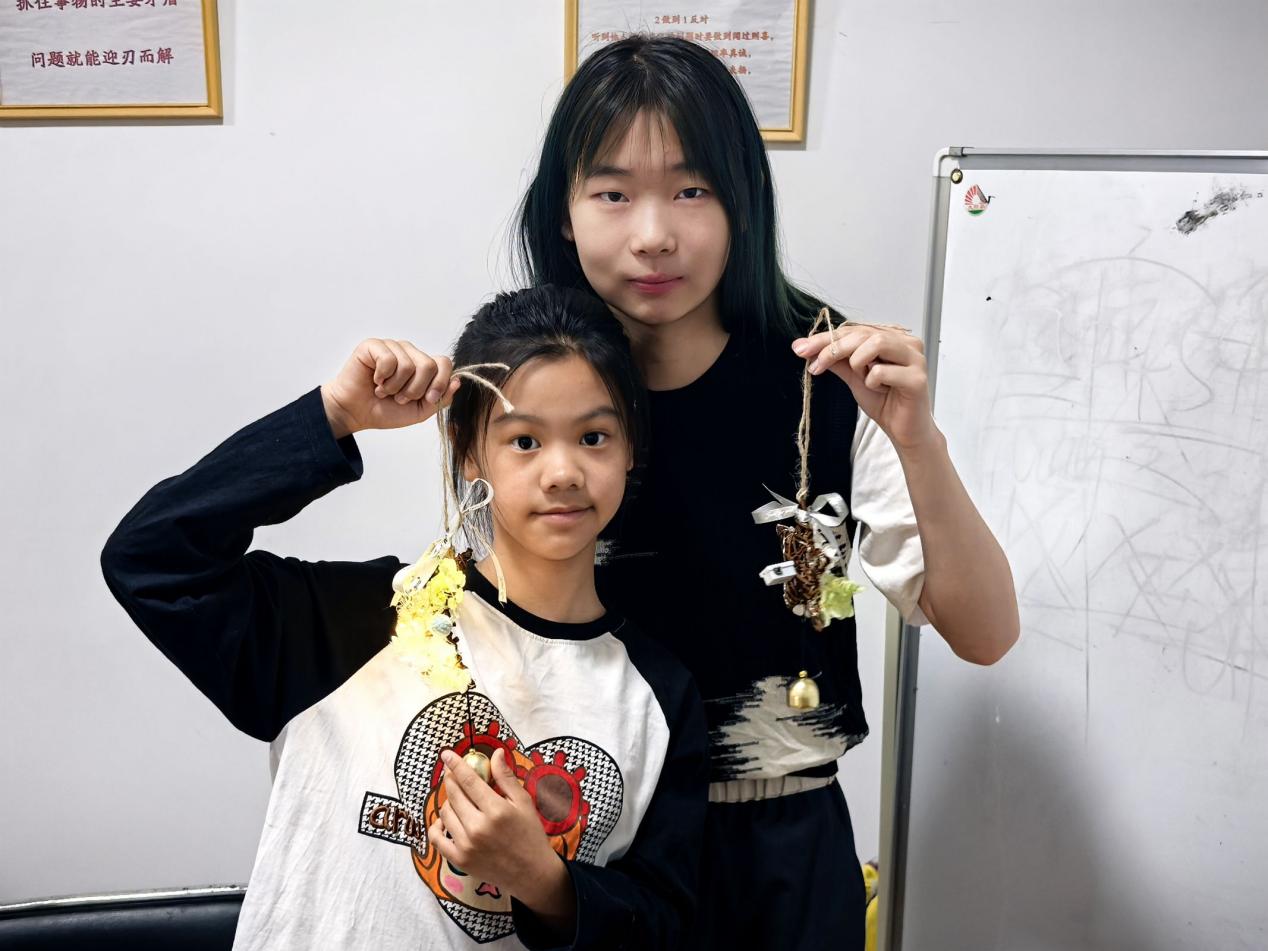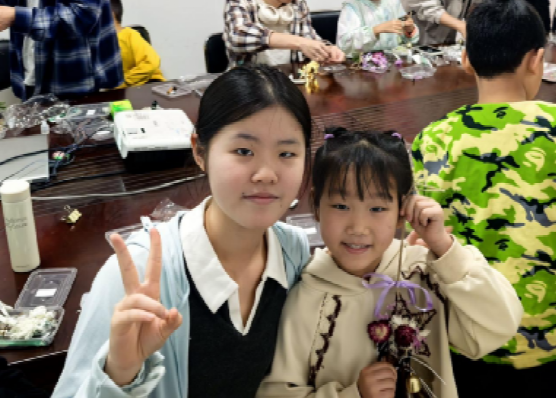 随后开始的自然工坊变身艺术实验室。孩子们迫不及待地拿起干花,运用押花、滴胶等工艺,将春日元素融入生活美学,创造出别具一格的作品。小朋友们巧妙地将粉色樱花与嫩绿叶片融合,创作出满载春日气息的书签,好似将春天的柔情尽数封存,用五彩斑斓的干花串成风铃,微风吹过,清脆的铃声宛如春天的低语。现场洋溢着欢声笑语,创作的热情与灵感在空气中交织,氛围异常浓厚。