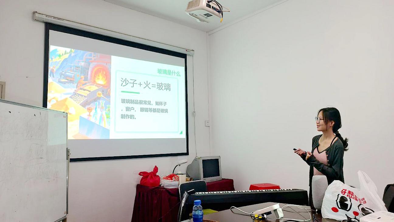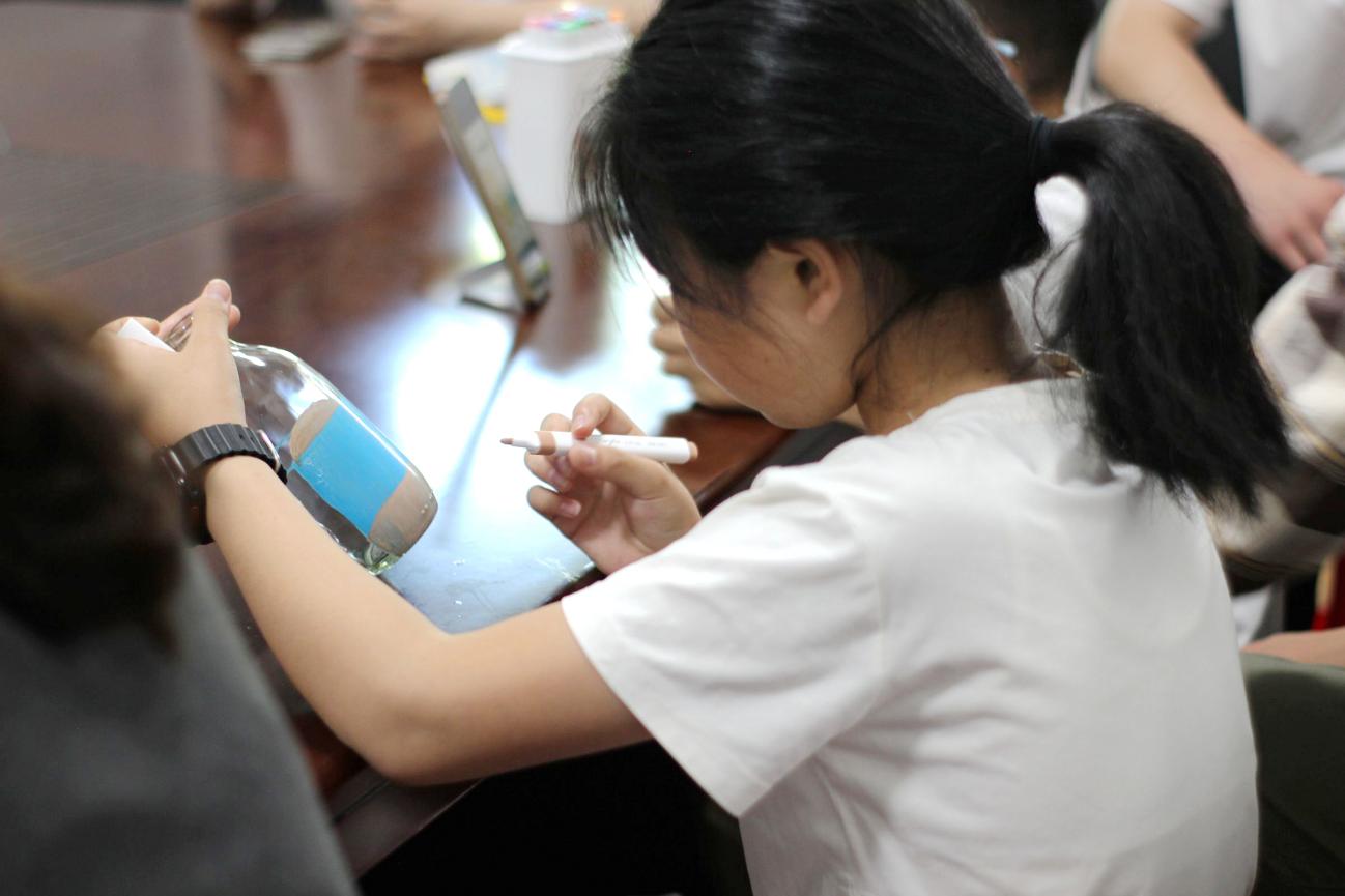 主讲人赵雅冉同学结合玻璃瓶实物,从制造工艺、回收利用、安全防护等角度展开科普讲解,并延伸至玻璃瓶绘画的环保艺术价值。在实践环节,孩子们以丙烯颜料为笔,将废弃玻璃瓶改造成星空、花草等主题艺术品,用创意赋予科学知识温度。