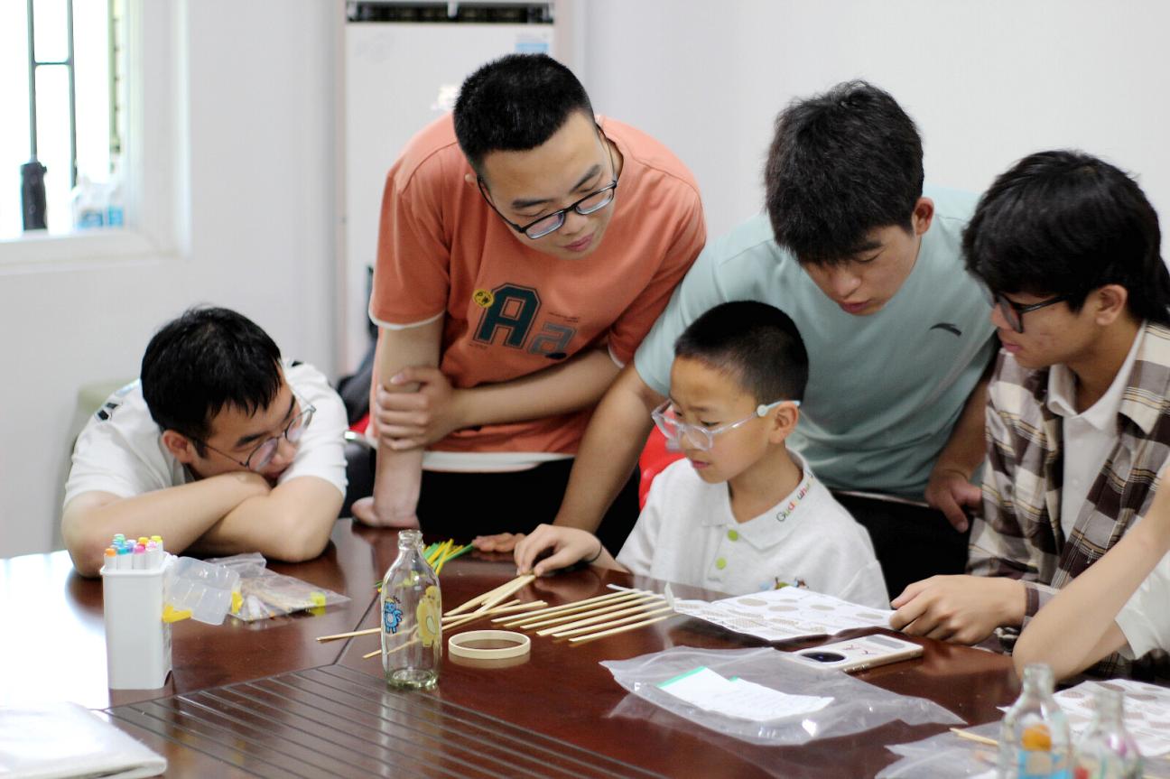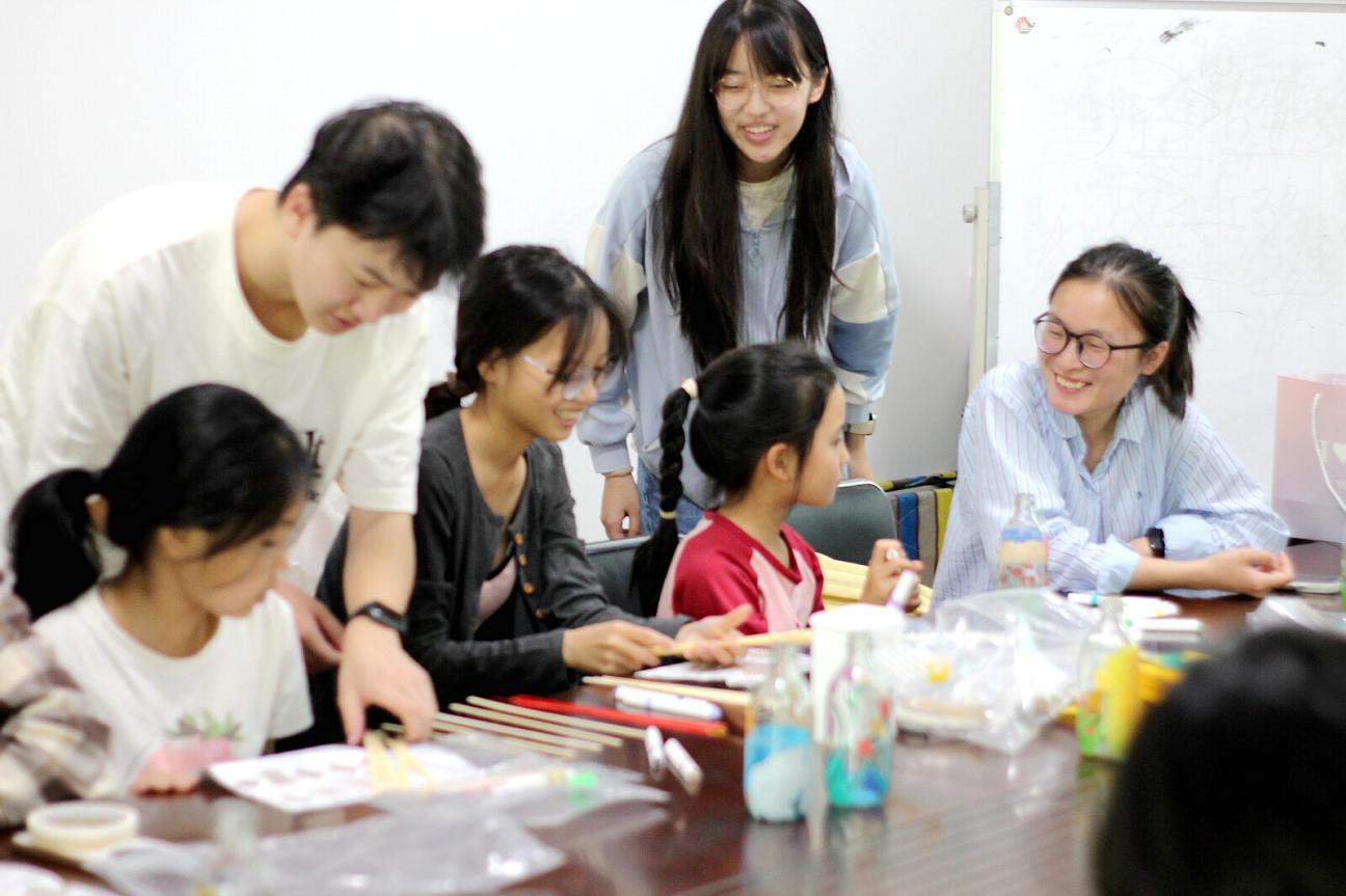 实践环节将活动推向高潮。在同学们的悉心指导下,孩子们先以玻璃瓶为画布,用颜料勾勒出天马行空的图案;随后又化身“小小匠人”专注地编织竹条、串连装饰,制作出独具特色的竹编风铃。活动现场欢声不断,清脆的风铃声与孩子们的成就感交织,传统工艺的种子悄然播撒在心田。