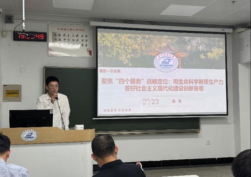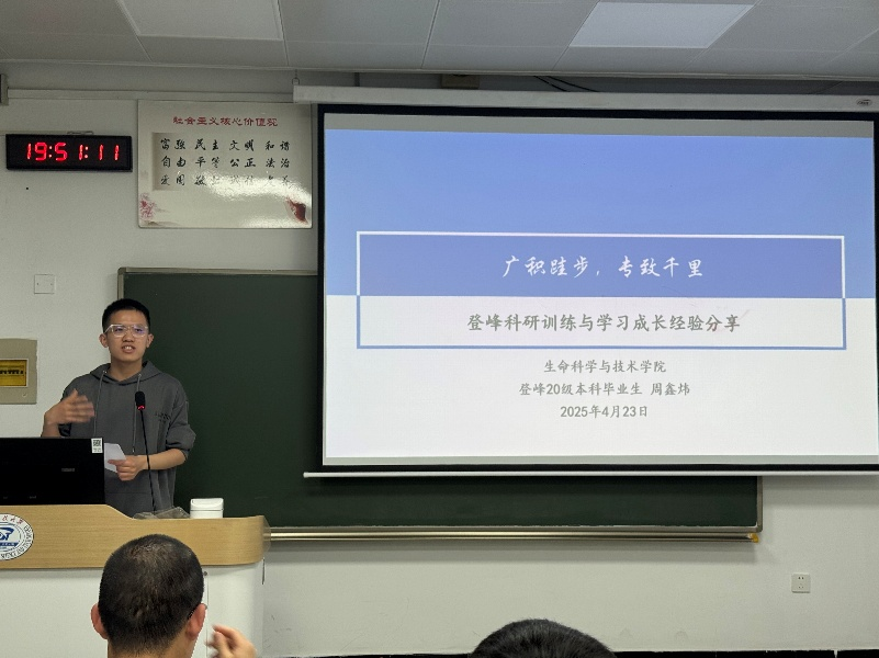 党支部面向学院首届强基计划登峰班以来的全体同学建立“新质登峰”科技志愿服务队,面向党员同志组建“新质登峰”党员先锋队,毕业生党员、党支部副书记杨哲讲授“毕业前最后一次党课”,面向登峰 2401 班同学以“四个服务”为切入点,号召同学们将学术研究与国家需求紧密结合,选择到党、祖国和人民最需要的地方去,把论文写在祖国大地上。党支部开展“典型学子报告会”,邀请原党支部副书记、学院2024级博士研究生周鑫炜授课,他从科研视野拓展与综合素养提升出发,分享生命科学领域的探索经验,鼓励青年党员在科研道路上勇攀高峰。两位党员的分享兼具方法论指导与理想信念教育,引发同学们热烈反响,充分发挥高年级党员在就业择业、成长规划中的朋辈示范作用。