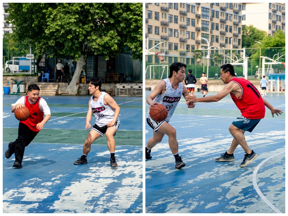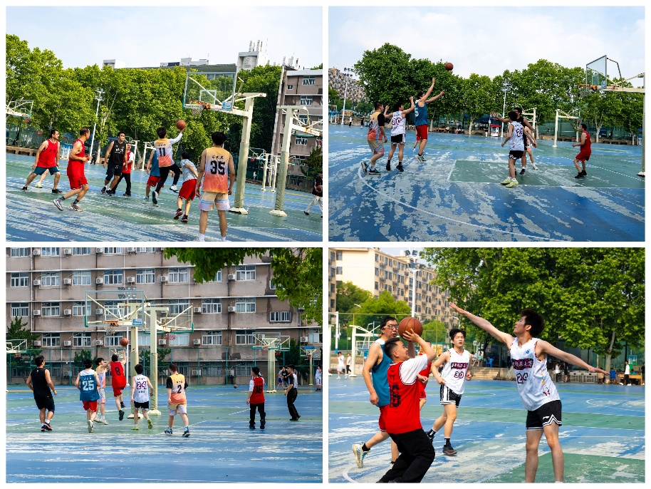 比赛前负责人和裁判简要介绍比赛规则,强调友谊第一安全为重。首节,教师队快速进入状态,流畅的组织和精准的投篮使得他们屡屡得分,同学队则有些慢热,最终第一节比分定格在12:7(教师队:学生队)。次节,同学队迅速作出调整,在落后的情况下互相鼓励并不气馁,两队你来我往,比赛进入高潮,最终教师队凭借着精彩的压哨中距离投射带22:20的两分优势结束上半场。