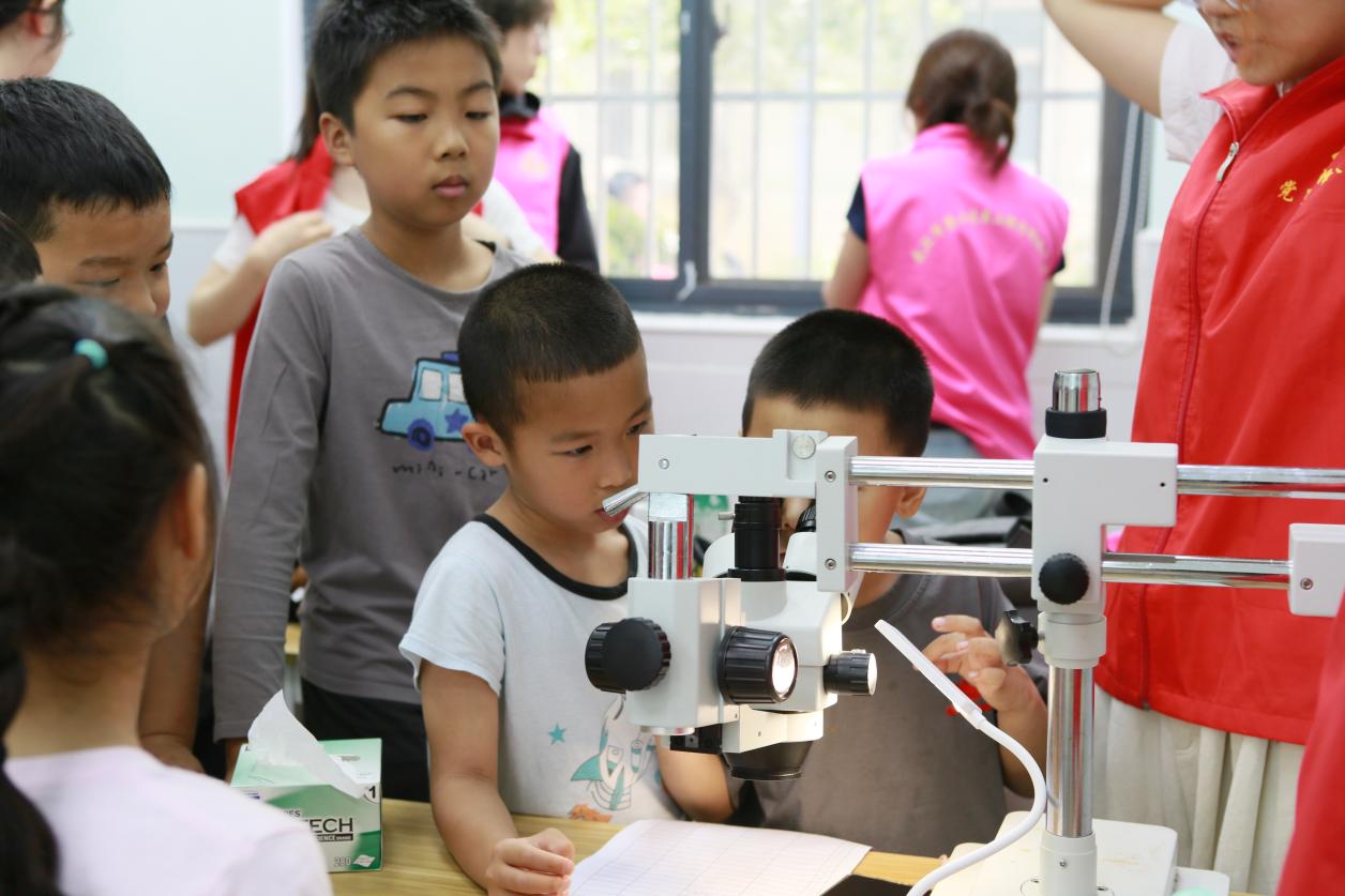 实践环节,在硕博学生的指导下,孩子们小心翼翼地拿起显微镜,开始观察微观世界。“太神奇了!”一位小朋友兴奋地叫起来,脸上露出了惊喜的笑容。其他孩子也纷纷围过来,想要看看这奇妙的景象。在这个过程中,孩子们专注的神情和对科学的热爱溢于言表,他们的眼神中充满了对未知世界的好奇和探索的欲望。