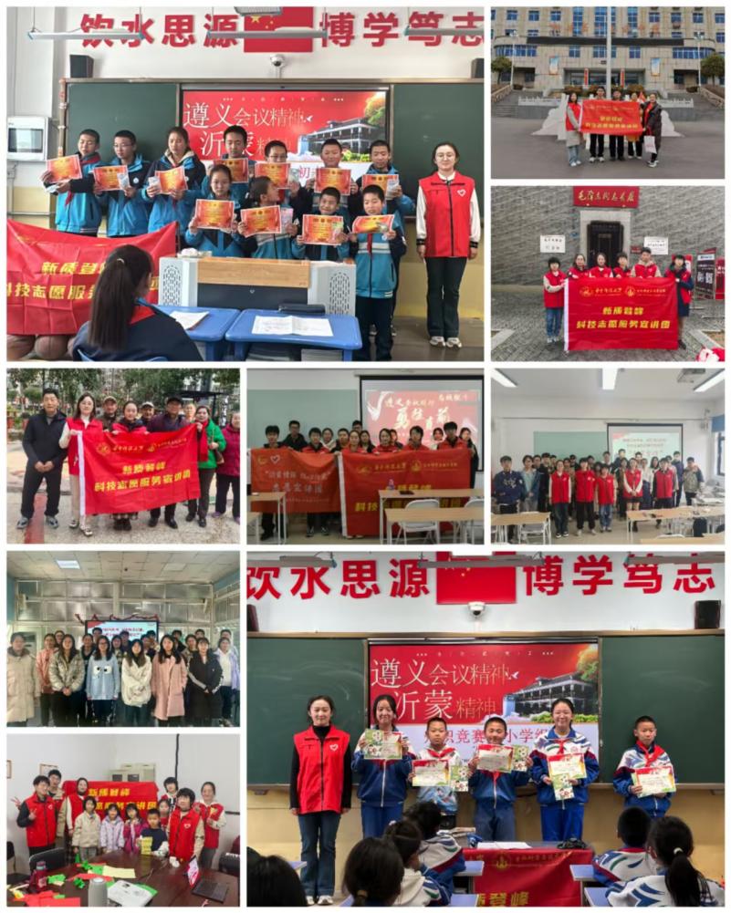 服务队围绕遵义会议等红色历史主题开展宣传活动,通过设置红色文化展板、发放宣传手册、志愿者现场讲解等形式,生动讲述红色故事,解读红色精神内涵。展板以时间为主线,系统呈现遵义会议的历史背景、主要过程及重大意义,搭配珍贵历史图片与文字解读,让参观者直观了解红色历史;志愿者结合党团共建中的学习经历,分享红色故事背后的精神力量,引导公众从红色历史中汲取奋进动力。