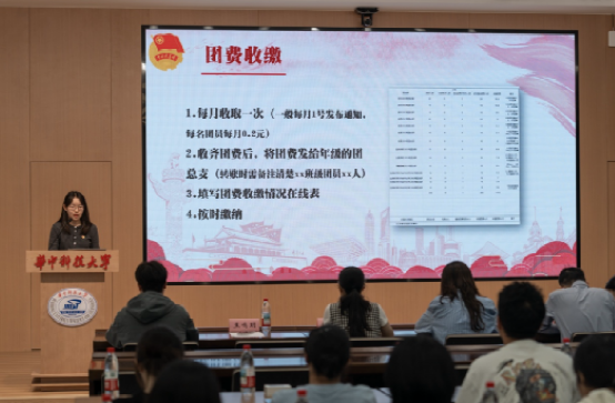 在基础团务培训环节,团委组织部工作人员郭佳悦围绕部门对接、智慧团建系统操作、团费收缴及团员发展等四方面进行细致讲解,帮助新任团支书系统掌握基础团务操作规范。通过清晰梳理工作流程与注意事项,使大家对未来工作的方向与重点有了更明确的把握,思路愈加清晰。