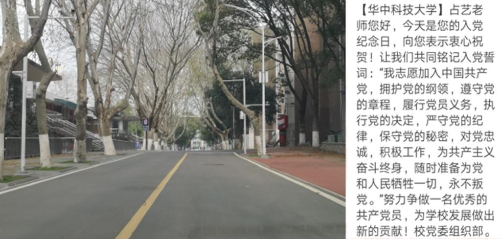 这是送亚库普出院回学校那天的校园,诺大的校园里安静得仿佛让人完全不认识一般。这时我才想起来,3月21日驰援学生的第一天正是我的入党纪念日,那天正是在飞驰的路途上,收到了学校党委组织部发来短信祝福。