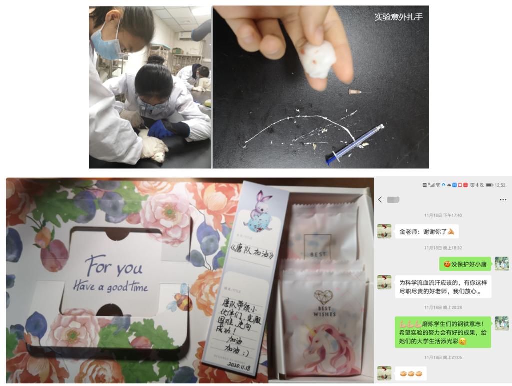 指导本科生开展科研工作,当团队遇到困难和挫折时,一盒小饼干带去的是指导老师的关怀和提振士气的鼓励,也让家长对学校更加理解和信任!
