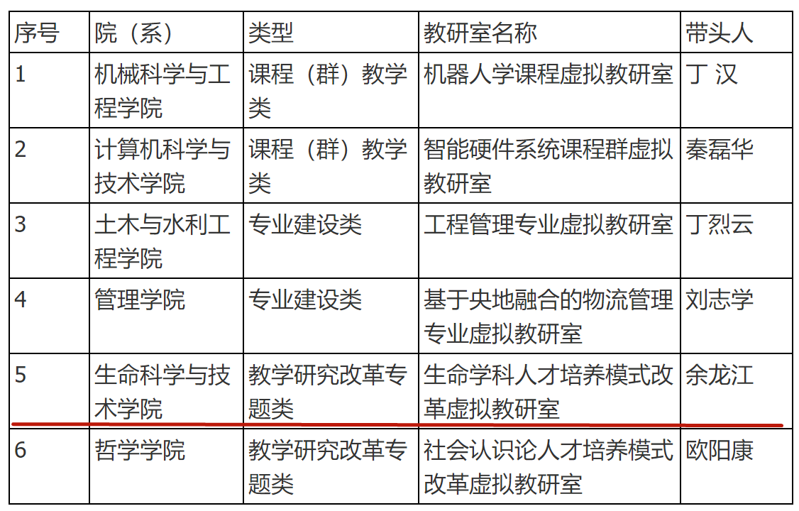 另我院作为合作单位参与建设2项,分别是生物医学工程专业获批由东南大学牵头申报的生物医学工程专业虚拟教研室(专业建设类)试点建设项目;实验教学中心获批由吉林大学牵头申报的生物学基础实验课虚拟教研室(课程群教学类)试点建设项目。