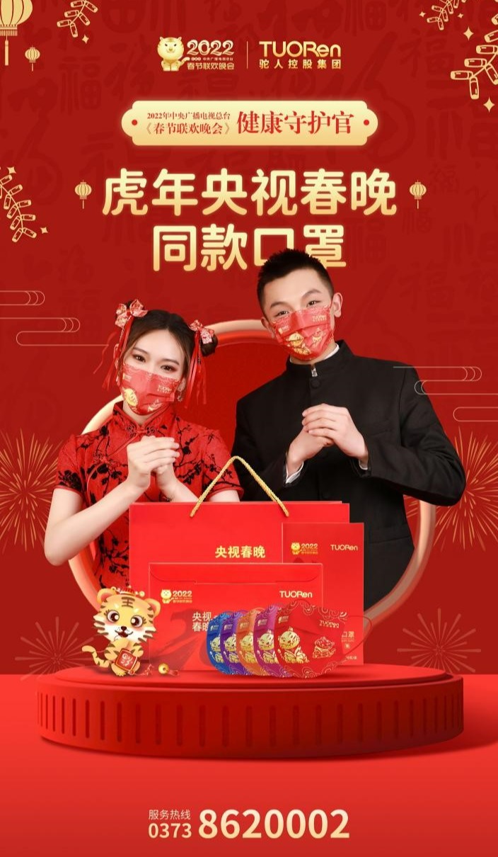 河南驼人控股集团是一家集研发、生产、销售、服务、文化于一体,专业从事麻醉、电子智能、医用防护等一次性医疗器械生产经营的现代化企业集团。自新冠肺炎疫情爆发以来,为保证医护人员与一线防疫人员安全,其自主研发的季铵盐灭活口罩、医用新型防护头罩、医用正压防护服等防护类产品,广泛应用于医学临床和社会防护,以科技创新助力健康中国的发展。此批捐赠口罩就是驼人集团赞助2022年中央广播电视总台《春节联欢晚会》参与人员的同款口罩。