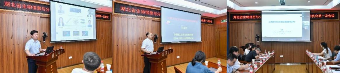 会议开始前, 科学技术发展院基地办公室刘爽代表学校致辞,回顾了湖北省生物信息与分子成像重点实验室成立的历史,并提出了对实验室未来发展的殷切期望。刘笔锋教授代表生命学院对各位专家莅临表示感谢,同时对生物信息技术的发展进行了回顾与总结,表达了对实验室将生物信息学与分子成像结合并与新时代的发展定位相适应的期盼。
