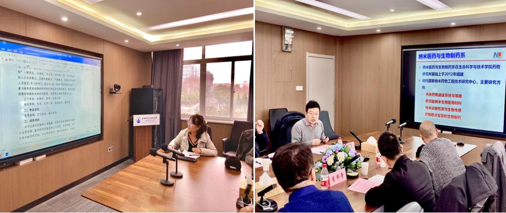 罗亮教授对本院生物制药专业教学、科研工作及科研转化整体情况进行了介绍。李子福教授对科研转化方面的工作进行了补充。