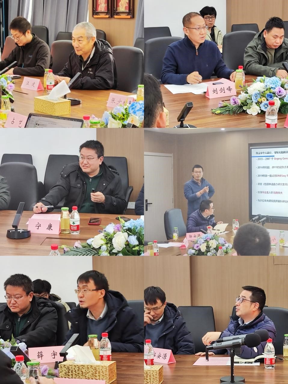 交流互动环节,刘剑峰提出人才资源共享、软硬件设备共享、基础研究课题共建、工程硕博拔尖人才培养等方面的合作思路;占艺分享近年来华大基因创新班的发展情况和校企联合培养工程硕博方面的经验;宁康、陈卫华、薛宇、郭安源分别介绍课题组科研情况和校企合作方向,并与华大集团进行有针对性的具体讨论。经过深入研讨,校企双方在科研创新、人才培养等领域达成共识。