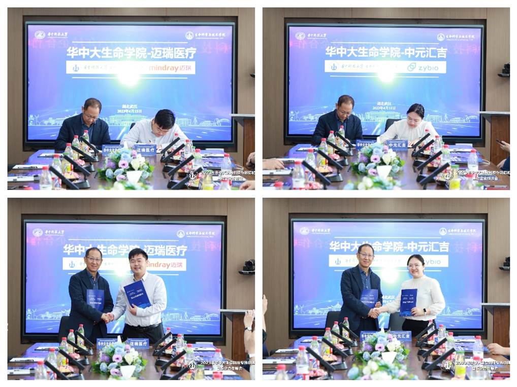 刘剑峰表示生命学院一直以来高度重视校企合作,围绕拔尖人才培养、科研创新攻关、成果转化落地等方面,将引进来和走出去相结合,与行业龙头企业、校友兄弟企业等建立起稳固的合作纽带,充分发挥学院科研创新优势,聚合企业资源优势,携手并进,推动各项事业蓬勃发展。期待通过此次校企合作能够进一步建强校企纽带,激发更多的合作动力,推动校企合作再上新台阶。生命学院分别与深圳迈瑞生物医疗电子股份有限公司、中元汇吉生物技术股份有限公司现场签订全面合作框架协议。