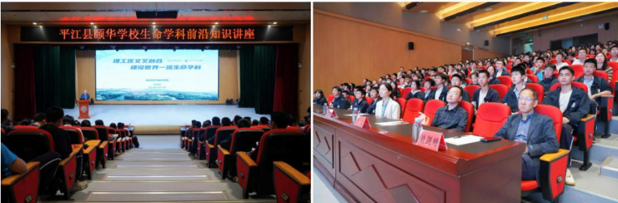 戴则健和刘剑峰分别为颐华学校500余名高中学生做招生宣讲和生命学科科普报告。刘剑峰以《理工医交叉融合、建设世界一流生命学科》为题,全面、系统、深入地解读了生命学院的科研平台、学科实力、科研论文与成果转化、研究方向、人才培养特色等生命学科前沿知识,激发了与会学子的探索热情。