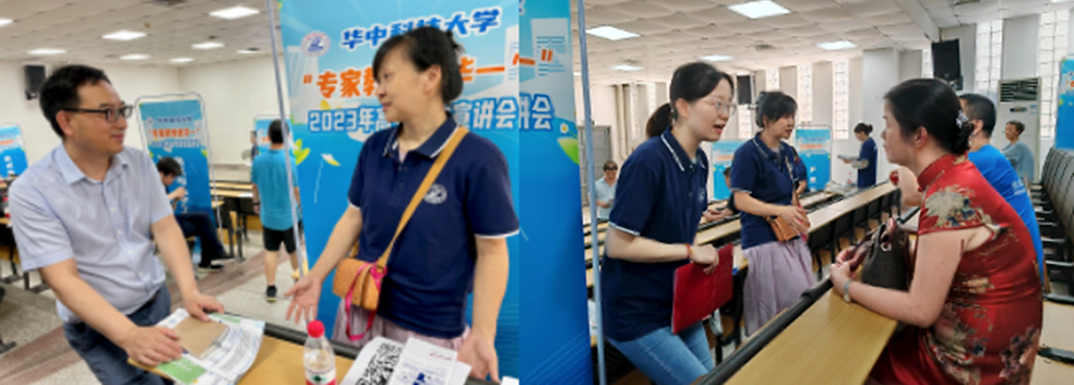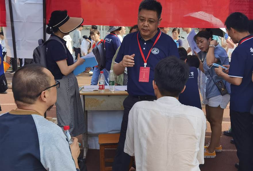 6月10日,学院院长刘剑峰在华中师大一附中报告厅做生命学科招生宣讲,刘剑淼老师和蒋晗洁老师同时为考生家长们做招生咨询