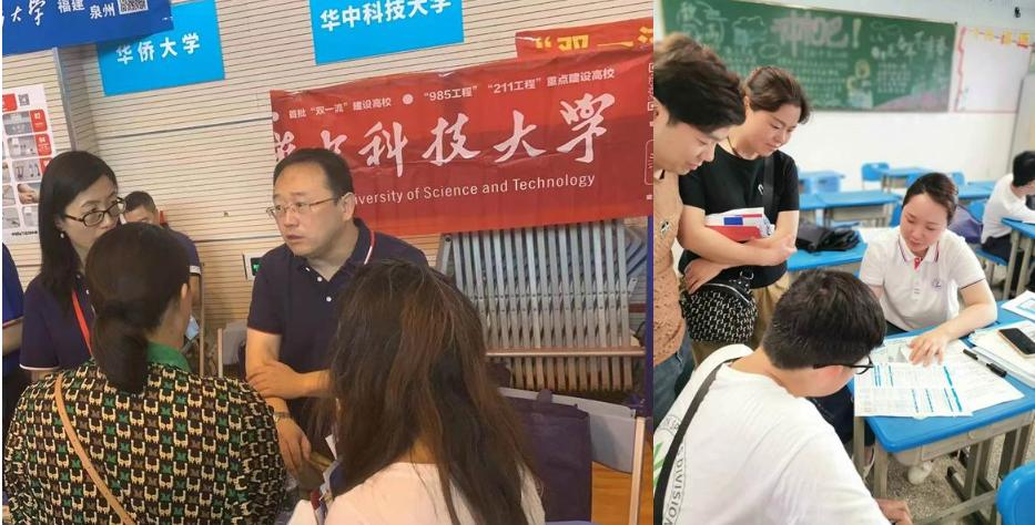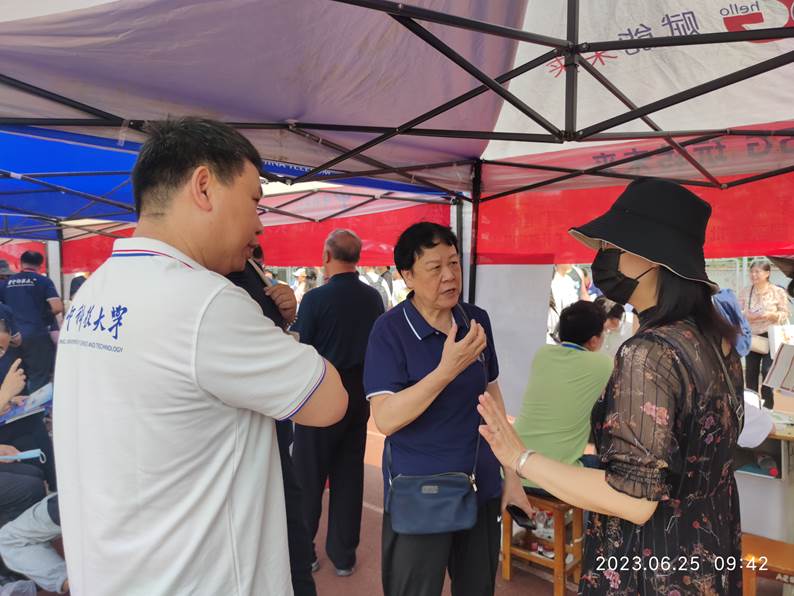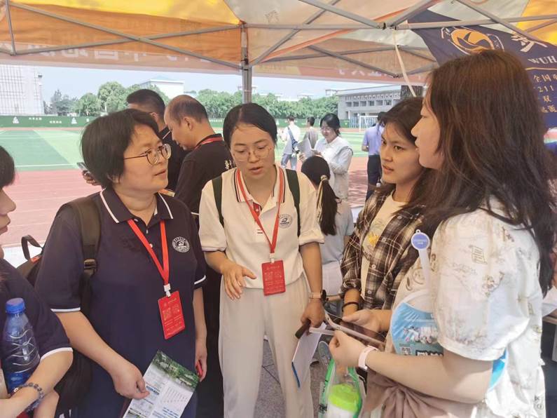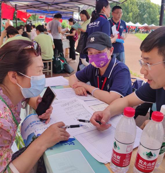 除了校外的咨询,生命学院五个系以及实验教学中心、科研共享平台、各行政科室在6月18日“校园开放日”和6月25日到7月2日也安排老师坚守在学校游泳馆和光谷体育馆招生咨询现场,为考生及家长答疑解惑。