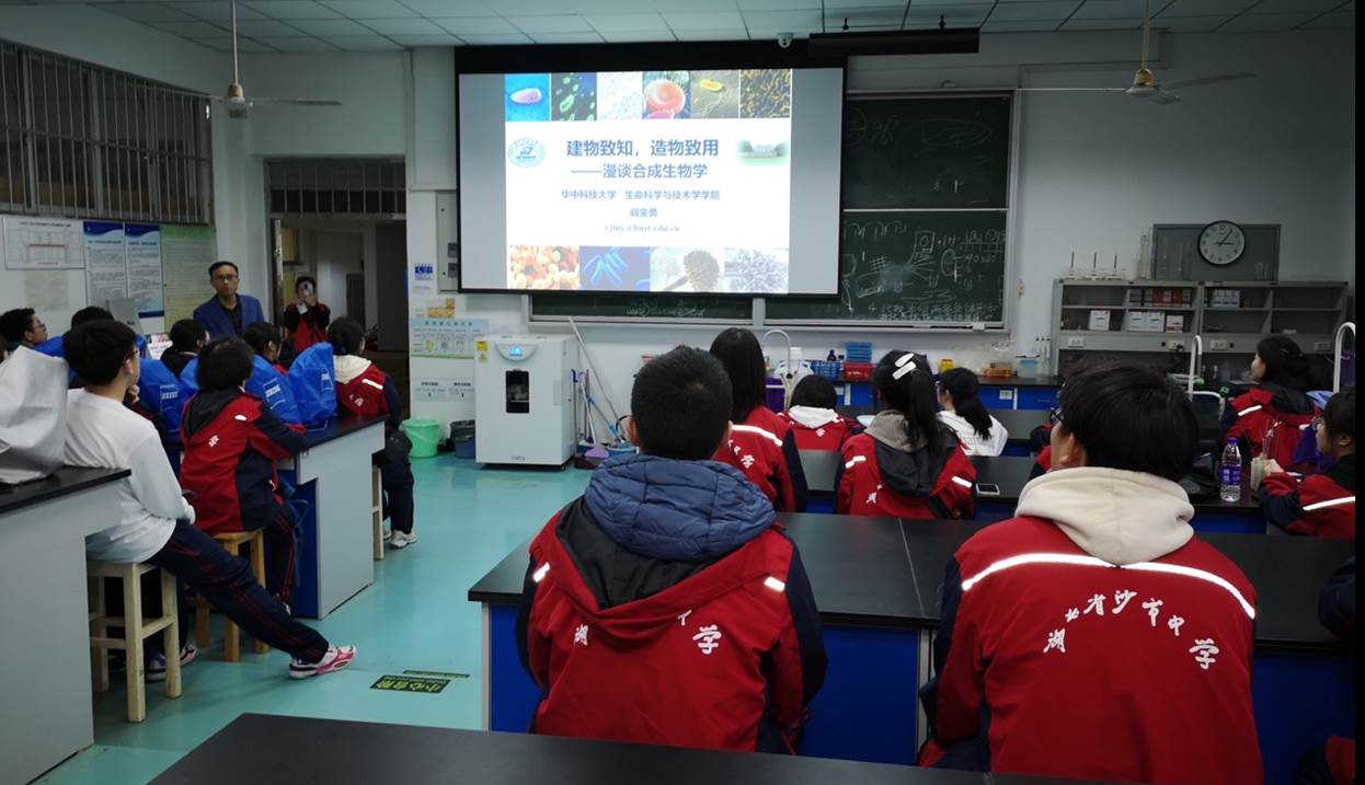 4月3日,生物技术系阎金勇老师为沙市三中高一学生做合成生物学科普讲座