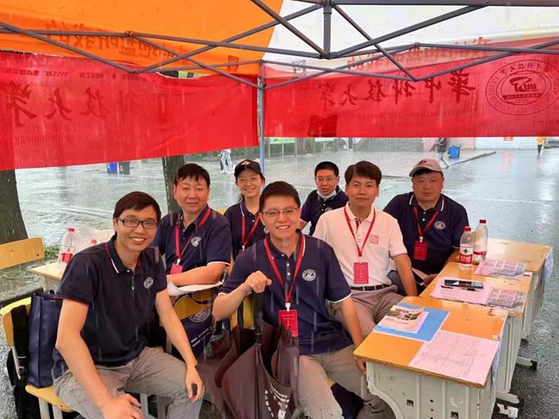 蒋晗洁老师和仙桃招生组其他成员在大雨中坚守招生“阵地”