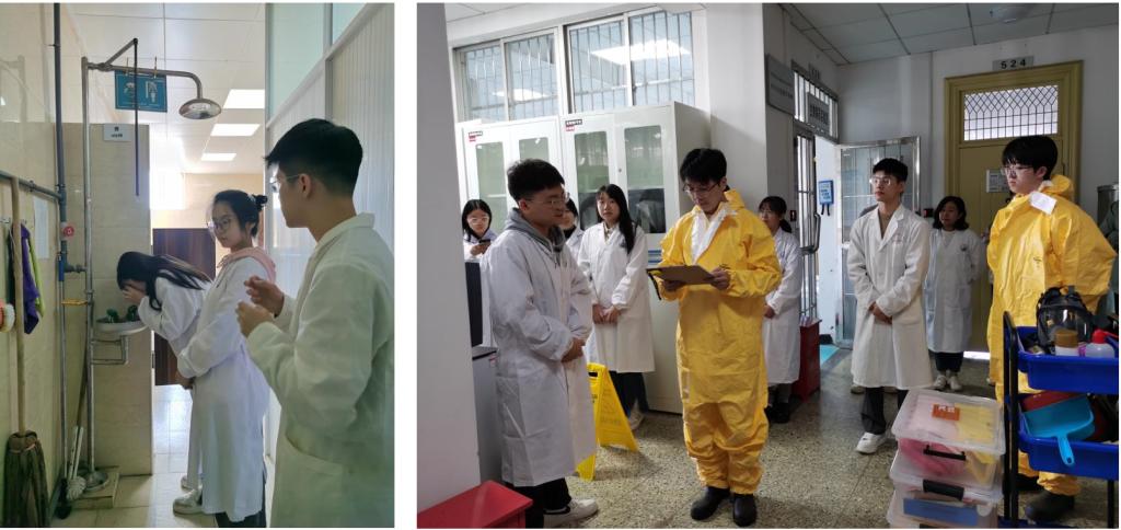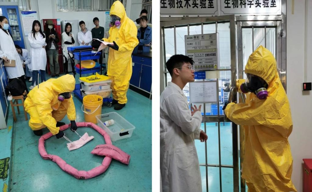 为切实增强师生安全意识,提升安全事故应急处置能力,树牢安全红线意识,营造“人人讲安全、个个会应急”的安全氛围,2023年11月6日上午10:00,由我院举办的“实验室危化品泄漏应急演练”在东十二楼525室举行,学院办公室主任、安全管理员、实验室/中心/平台安全员以及师生代表40余人到场参与培训并观摩演练。