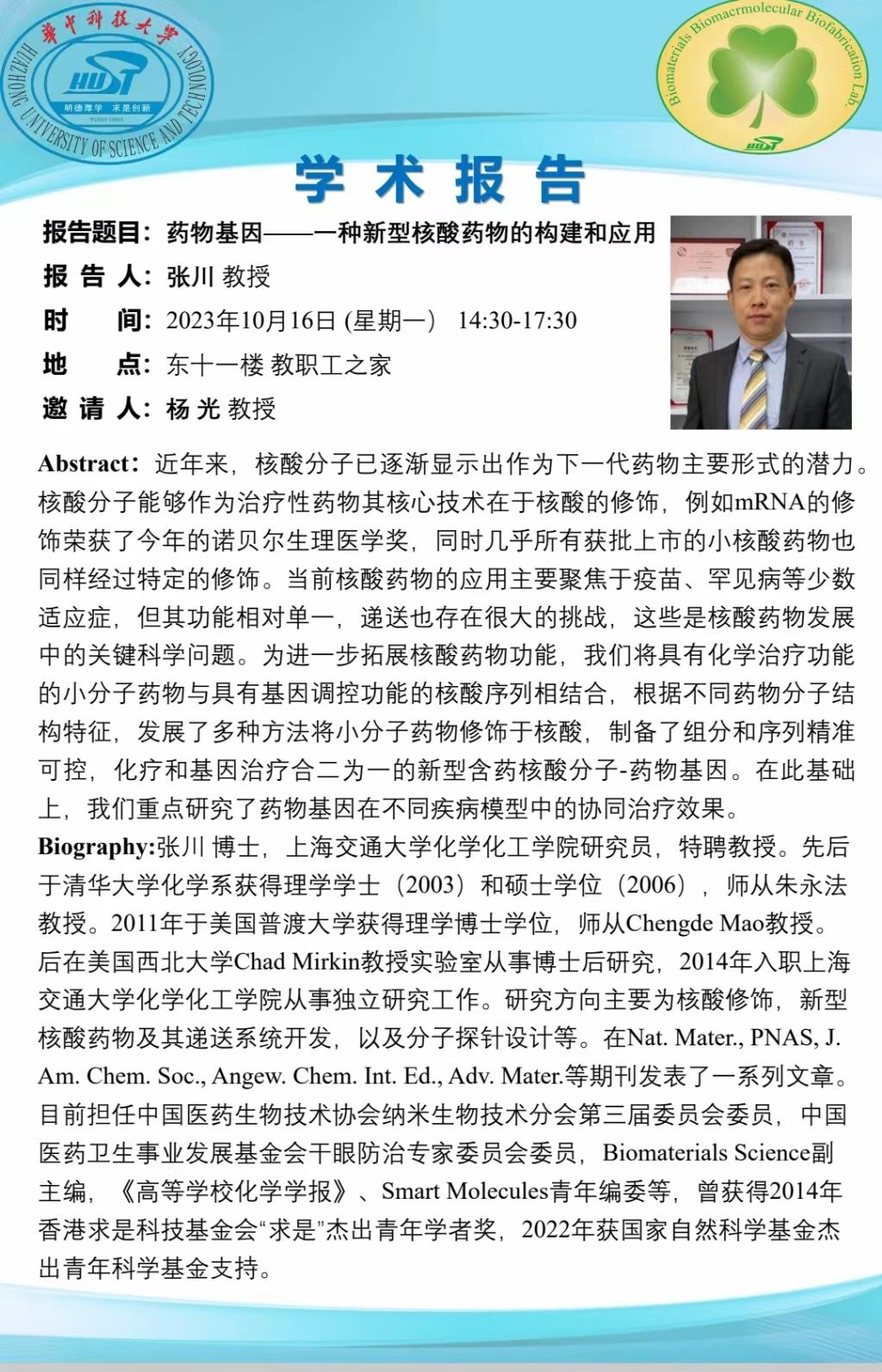 报告题目: 药物基因-一种新型核酸药物的构建和应用