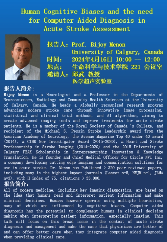 报告题目:Human Cognitive Biases and the need for Computer Aided Diagnosis in Acute Stroke Assessment