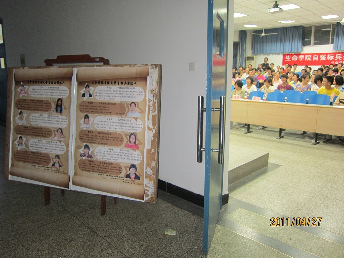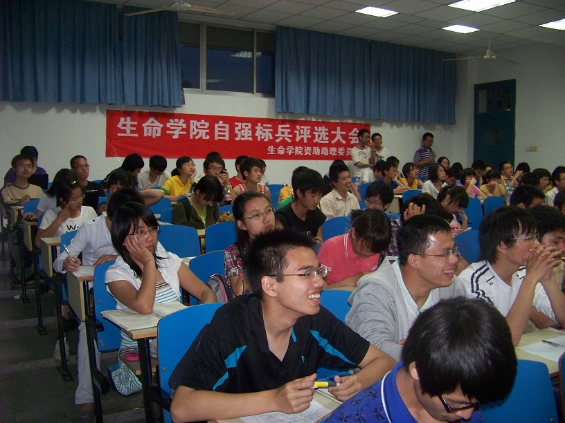 4月27日晚,生命学院第二届自强标兵评选大会,在东十二J2302举行,现场的“亲友团”阵势庞大,大教室内座无虚席。评委席上有:资助中心行政部部长杨倩,副部长韦黄丹,资助辅导员谢倩,同济一部辅导员金文闻,二部辅导员余洪波,辅导员谭帅群,其中葛茜作为学工组组长,在最后对本次活动作了点评总结。此次活动有12名候选人,其中有2名男生,最终获得“自强标兵”荣誉称号的六位候选人,无一例外,全是女生,其中10级三名,09级一名,08级两名,按票数结果,她们依次是:周雅帆,王少冉,黄青,张文倩与才育琴。她们大都有着不凡的自强经历,同时,也一样有着的笑脸与感恩的心。