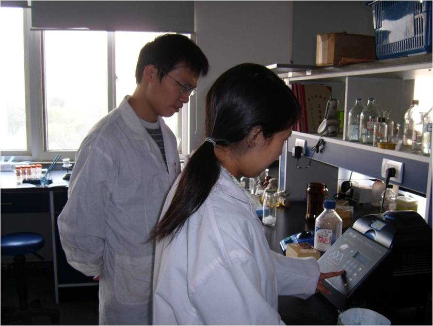 基地“乳腺癌风险评估与预测的模型及应用”项目组两位成员正在实验室完成测序工作