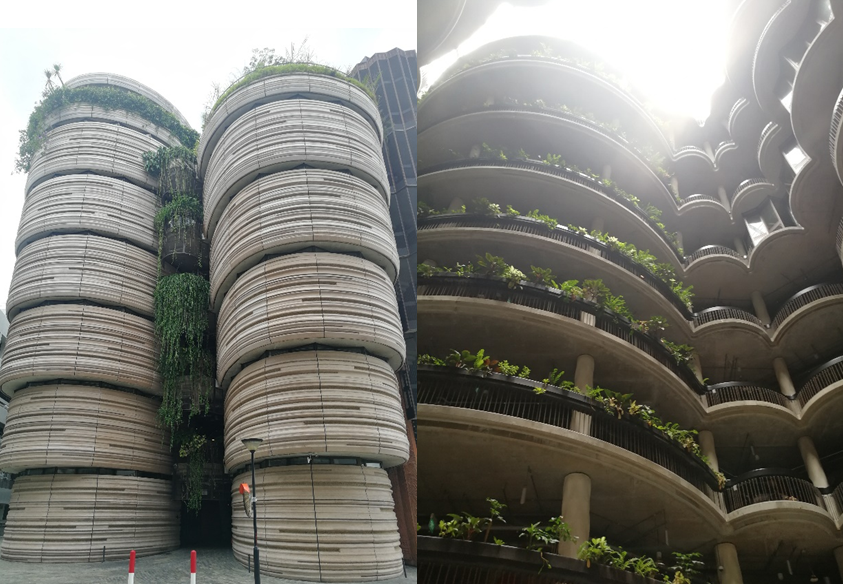 随后参观的宿舍,其建筑风格却又新颖很多,有得恰似南洋风格小洋楼,有得像是一座蜂巢,整体绿化也做得很好,给人以一种清净、静谧的氛围。