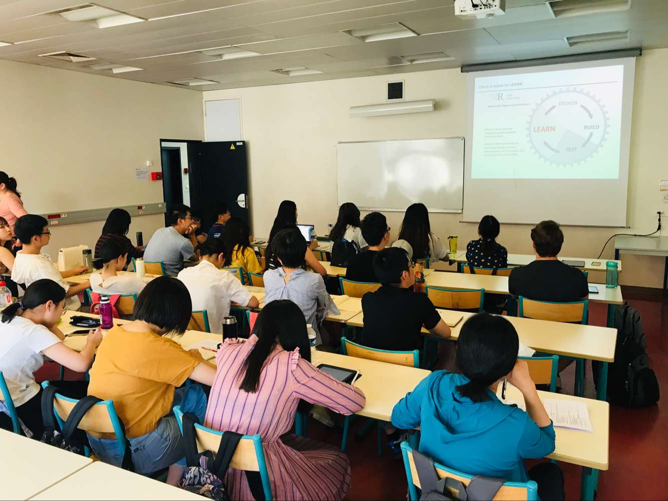 In the afternoon, our course is about the definition and introduction of synthetic biology and some related introductions of computer-aided metabolic engineering, which is taught by Professor Lonana POPESXU.Synthetic biology is a biological engineering. It designs and constructs new biological functions and draws on the principles of biology and engineering to achieve beneficial purposes. Synthetic biology uses four principles that are not usually found in genetics, genomics or molecular biology: abstraction, modularization, standardization, design and modeling. Synthetic biology intersects with engineering, bioscience, chemistry and information technology.