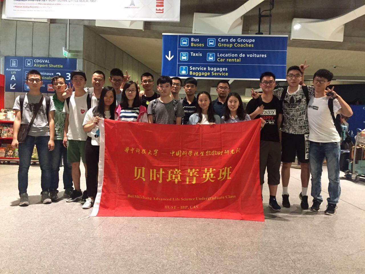 与此同时,贝时璋班的17名同学在班主任谢红萍老师的带领下,从北京出发飞往巴黎。两只队伍将在巴黎回合,共同学习一周,随后贝时璋班的同学们将前往哥廷根大学再学习一周,而HUST-French Summer School Of Biology的同学们将继续在法国进行接下来一周的学习。