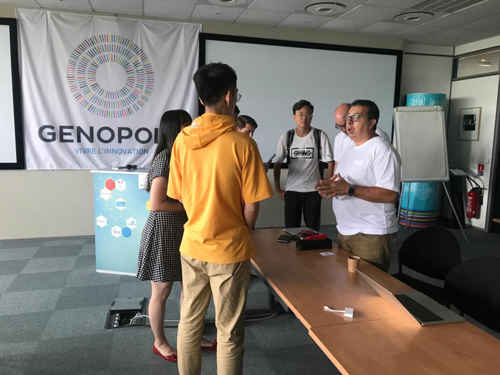 下午,我们参观了位于埃夫里大学附近的基因谷Genopole。成立于1998年,是法国历史最悠久,规模最大的生物集群(biocluster),它致力于基因组学驱动的研发和创新,它旨在鼓励创新,以促进健康经济、公民健康和环境健康的发展进步。今天,通过为生物企业家提供环境和基础设施,Genopole已成为人类,动物和微生物遗传学领域的领先集群,并在创新生物疗法,个性化医疗和工业生物技术领域拥有杰出的专业水平及素养。