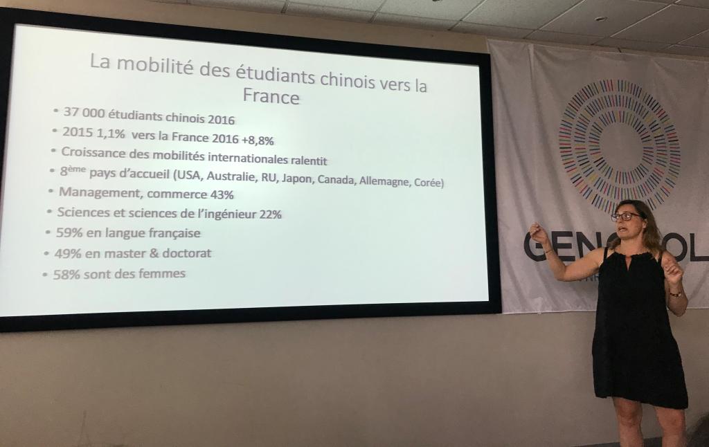 随后,主管国际项目的Aurélie Seguin经理和大家分享了目前中法两国在培养人才上的合作以及科研项目上日益紧密的合作交流。她收集了许多相关的统计数据,直观地表现了目前已有3700名中国留学生在法国读书,其中有43%的同学在攻读研究生或博士学位,未来期望中国留学生人数达到5000。同时,两国之间有很多科研项目也正在如火如荼地进行,发展前景十分可观。让大家出其不意的是,这位老师的PPT上都是法语,只能全靠听老师讲输入知识,使得这节课略显吃力。